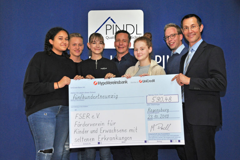 Die Schüler der Pindl Schulen sammelten unter anderem am Bürgerfest in Regensburg rund 600 € für den Förderverein für Seltene Erkrankungen e.V. Herr Markus Pindl, Geschäftsführer der Pindl Schulen, zeigte sich hocherfreut über das Engagement aller Beteiligten: „ich war begeistert zu sehen, wie schnell sich Kinder und Erwachsene mit dem Thema „Seltene Erkrankungen“ auseinandergesetzt haben und eine hohe Spendenbereitschaft zeigten.“